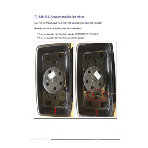 TPI 846-008 THIS HOUSING IS REQUIRED IF YOU HAVE A MRROR ACTUATOR PRIOR TO WEEK 27 OF 2016 (See image 2)